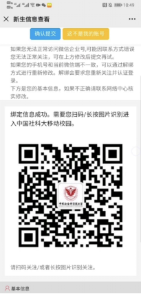 “中国社科大移动校园”企业号为中国社会科学院大学(中国社会科学院研究生院)移动校园官方微信账号,为全校师生提供移动端校园信息服务。新生通过扫码认证后,可在手机端完成迎新相关的信息采集工作,提前了解报到当天需要完成的现场迎新环节以及在现场查看迎新进度。