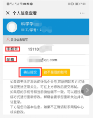 3、绑定手机号(微信使用的手机号)及邮箱,点击“确认提交”按钮。